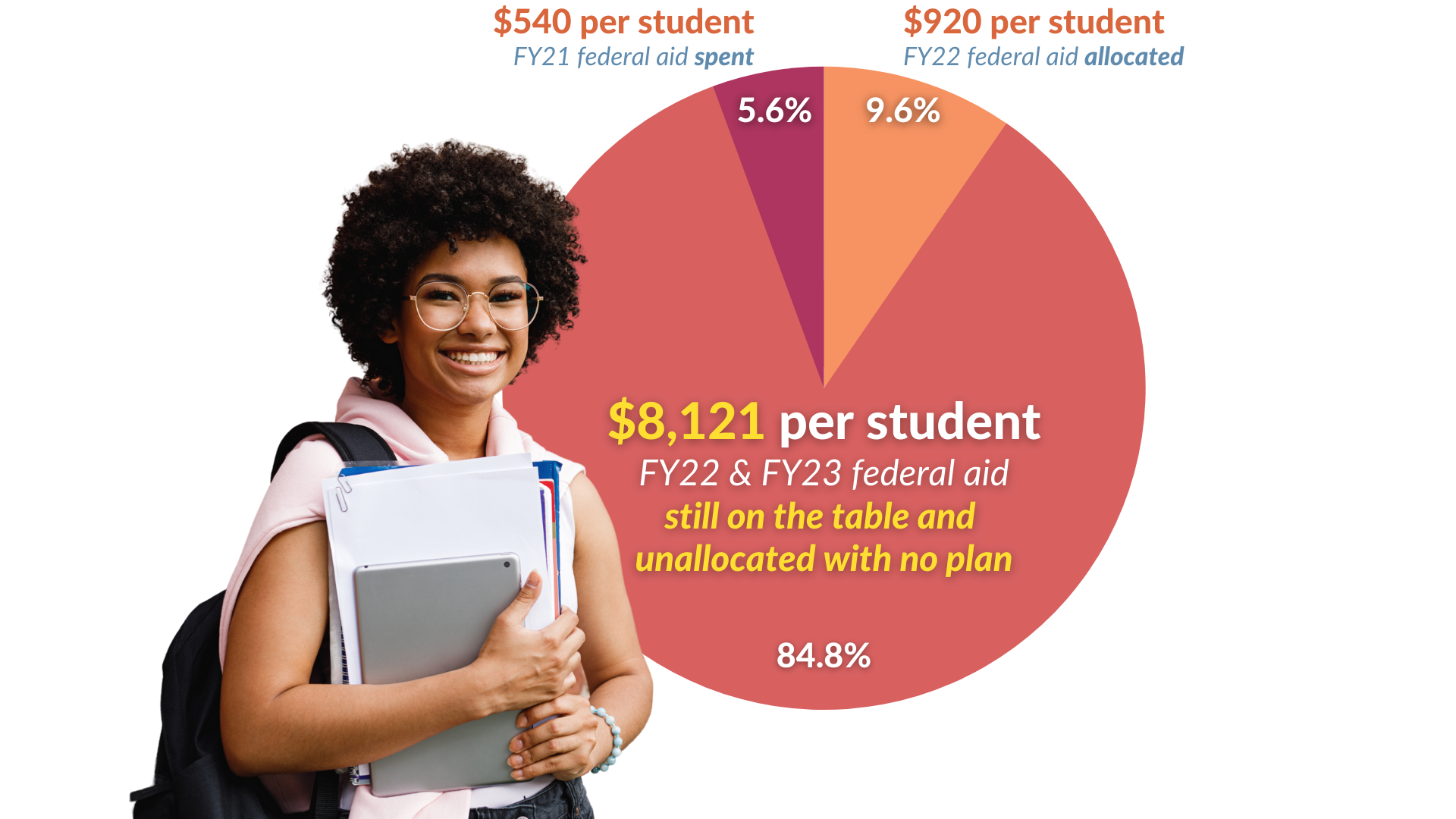 That leaves around $8,100 of federal aid per student still on the table, with no publicly-shared plan for what to do with all that money.