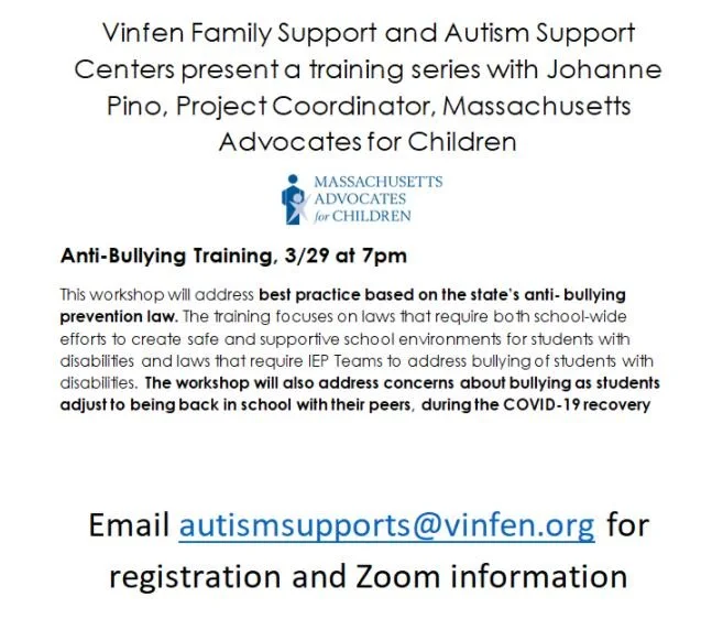 Email autismsupports@vinfen.org for registration and Zoom information