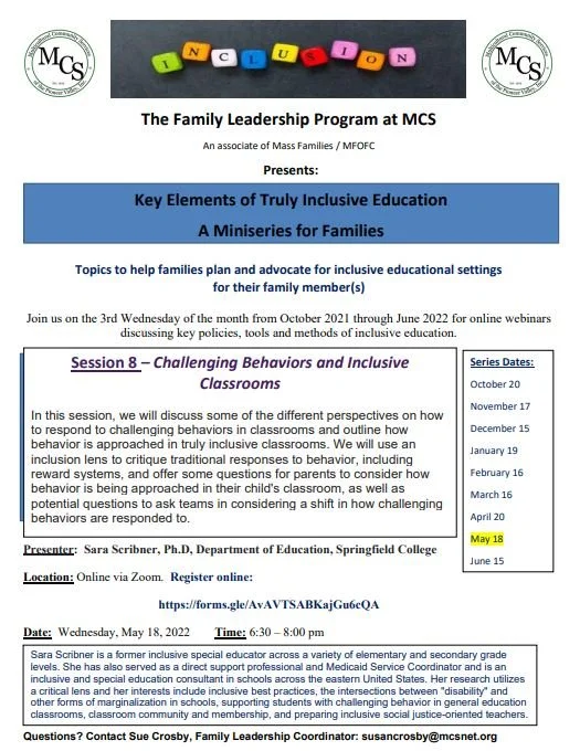 Session 8: Challenging Behaviors and Inclusive Classrooms. Register Here