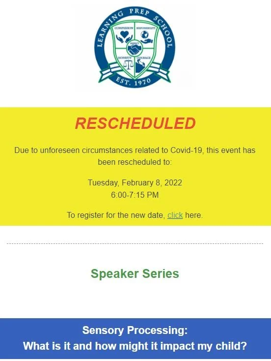 Sensory Processing: What is it and how might it impact my child? Tuesday, February 8, 2022 6:00 PM 7:15 PM Google Calendar ICS Register Here